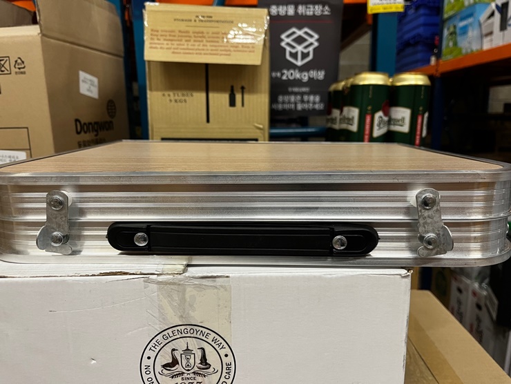 선물하기도 좋게 큰 케이스에 맥주캔 8개와 테이블이 함께 들어가 있으며 접어서 손잡이를 만들 수 있게 되어 있어서 들고 이동하기가 편리합니다.