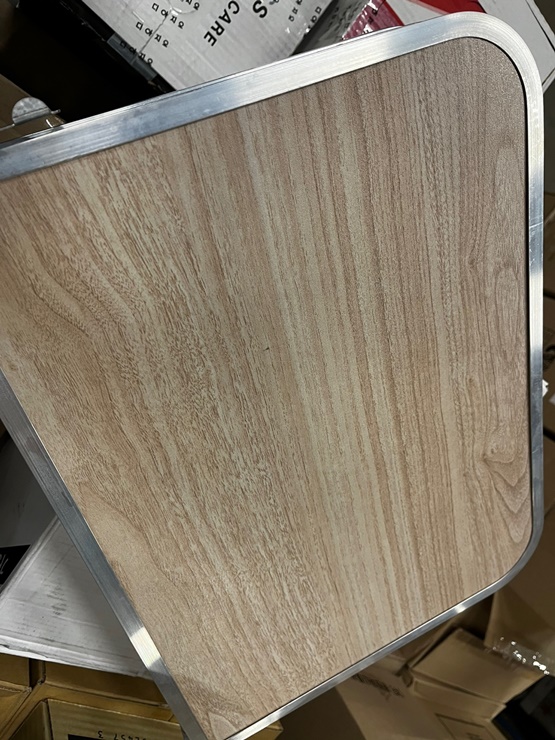 함께 포함된 캠핑 테이블 경우에는 굉장히 튼튼하게 만들어져 있습니다. 나무판과 스텐 재질로 구성되어 있어 고정시켜 놓으면 무거운 물건을 올려도 문제가 없을 정도로 견고합니다.