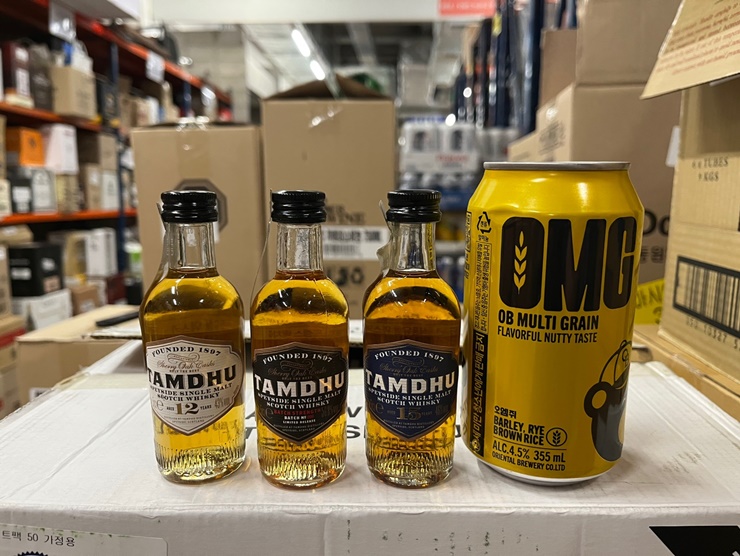 역시 355ml 맥주캔과 비교한 모습입니다. 탐두 위스키와 크기는 같지만 디자인 약간 다른 편입니다.