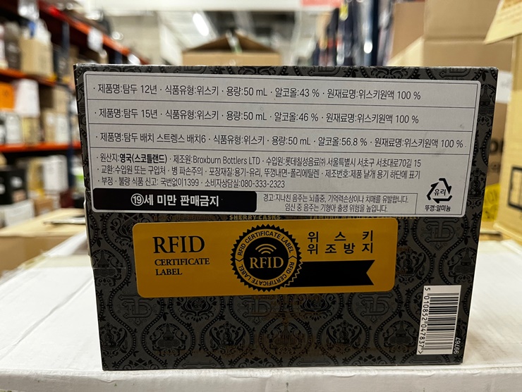탐두 위스키와 글렌고인 위스키의 각각 3가지 다른 종류의 제품을 넣어 판매하는 제품입니다. 현재 홈플러스에서 구하실 수 있는 제품입니다.