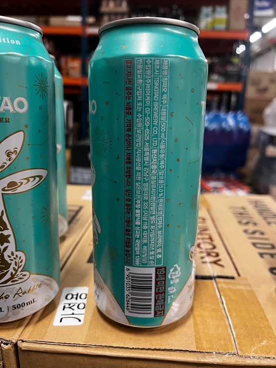 보통은 특별한 형태로 병이나 잔을 만들어서 칭따오 기획상품을 판매했는데요. 이번에 달토끼 패키지의 500ml 캔은 우리가 보통 먹던 초록색과 빨간색의 조합의 캔과 동일한 용기이며 디자인만 바뀌어 익숙하면서도 특별함을 전해주고 있습니다.