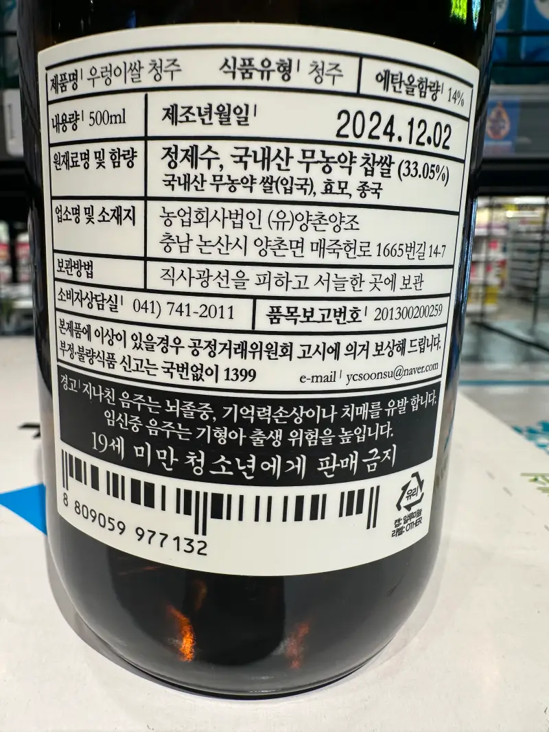 양촌 우렁이쌀 청주는 오프라인 매장에서는 보기가 어려운 편에 속합니다.