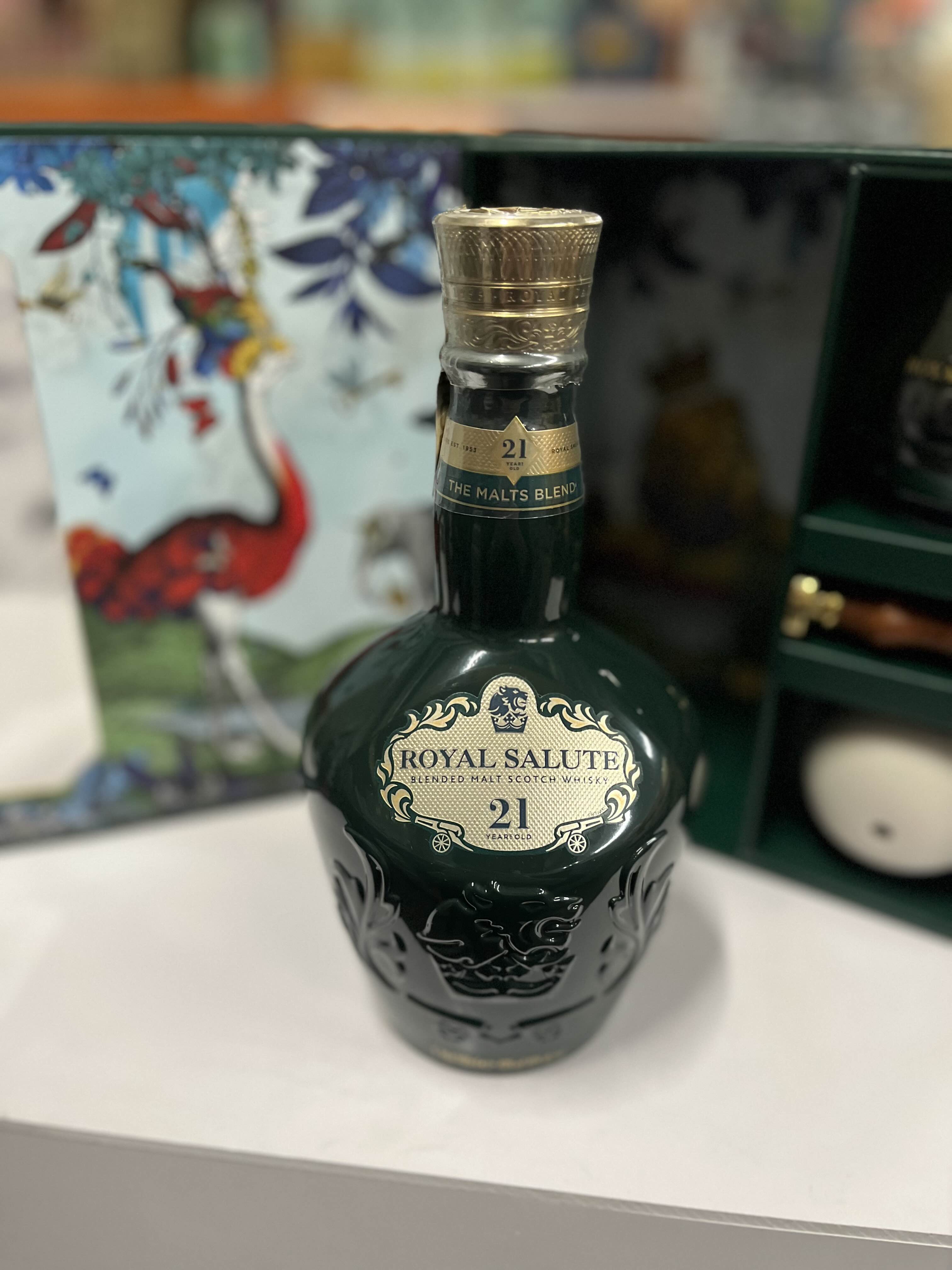 이번에 소개드릴 제품은 로얄 살루트 21년 더 몰트라는 제품입니다. 로얄 살루트는 보랏빛 나는 케이스에 도자기 병을 많이 생각하실 텐데요. 로얄 살루트 더 몰트는 초록색을 전체적으로 적용하고 있습니다.