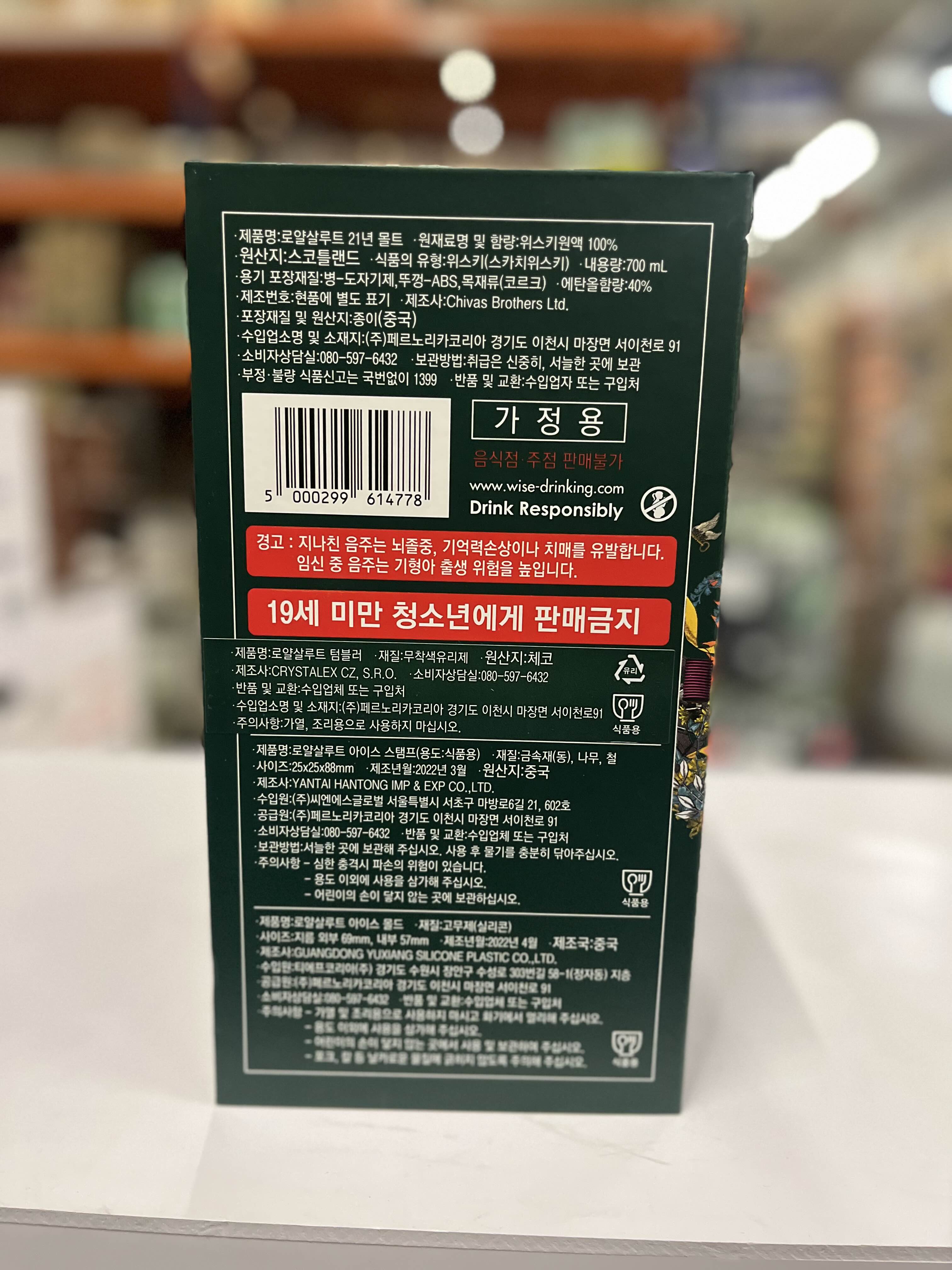 로얄 살루트 21년 몰트 제품 구성과 전용잔